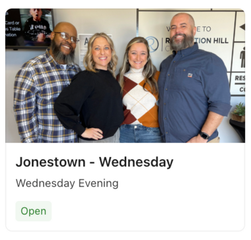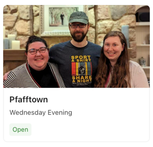 Click on any of the groups to get in contact with the group leader. Don't see a group that fits for you? Consider gathering some friends to start a new group.