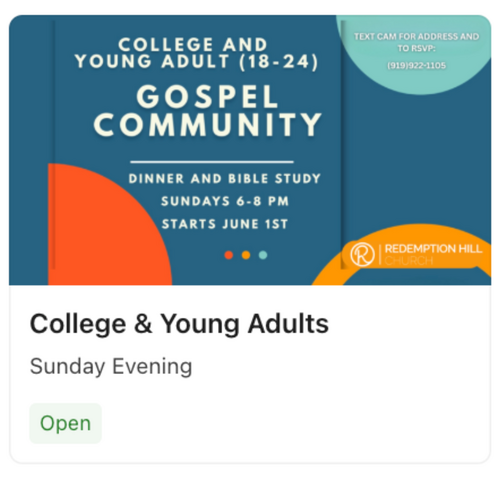 For more information about Gospel Communities, help finding a group, or details on starting a group, contact Jason Ledford (jledford@redemptionhill.net).